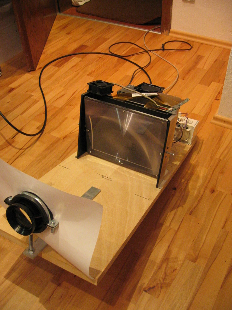 Wie schon oben erwähnt, war mein erste DIY-Beamer nur ein Testobjekt. Er wurde aus einem alten Diaprojektor und einem 4Zoll LCD-Monitor (mit eher bescheidener Auflösung - 320*240) zusammen gebaut. In meinem Tagebuch auf www.diybeamer.ch berichte ich noch genauer über den Aufbau und die ersten Tests. "Tagebuch". Mit dem Ergebnis war ich aber schon mal recht zufrieden. Es war also geschafft, ich hatte meinen ERSTEN DIY-Beamer fertig. |
