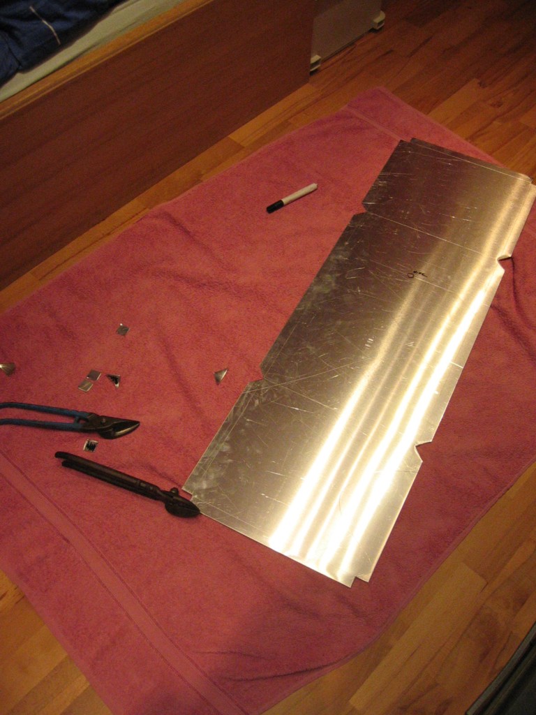 | In den Tests stellte sich heraus, dass die Lichtbox ohne Kondensor besser arbeitet als mit. Dies ist aber bei mir ein Sonderfall aufgrund des Spezialaufbaus der Fresnellinsen"EE3". Als ich die Testphase abschließen konnte und die Abstände der Komponenten exakt vermessen hatte, konnte ich mit der Planung des Gehäuses beginnen. Das Gehäuse ist wie auch schon mein Nebelmaschinengehäuse aus 1,5mm Alublech. Das Blech wurde zurecht geschnitten, angezeichnet und zum Biegen zu einer Lüftungsbaufirma um die Ecke gebracht, da das Blech zu groß für meine Abkantbank war. Das Objektiv wurde vorne auf dem Gehäuse mit einem PE-Rohr aufgesockelt und verschraubt. | ||||||